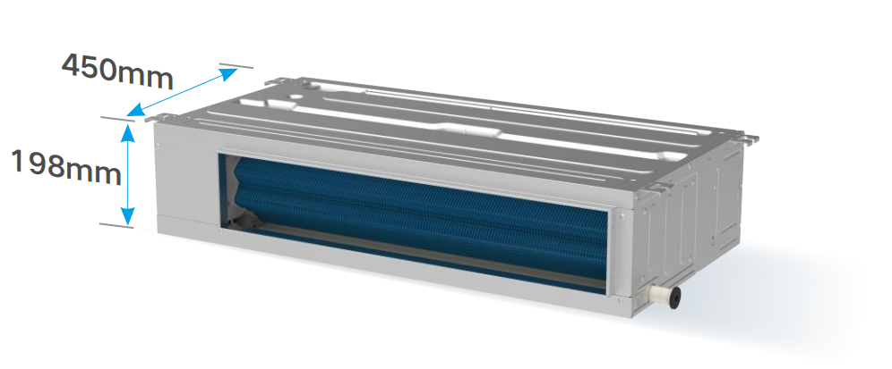 K+pro系列冷量范围为2.6kW-8.5kW,其中最大8.5kW机型可满足45㎡以上大客厅、大空间的供冷/供热需求。全系列机身厚度仅198mm,机身纤薄,节省空间。