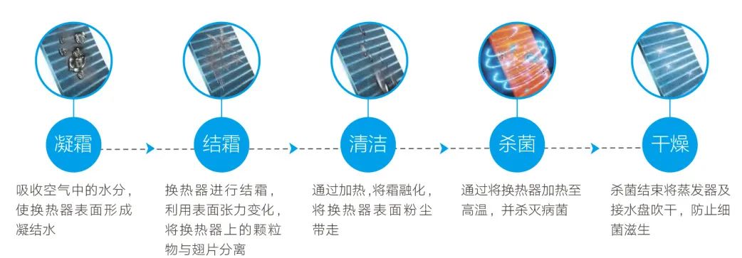 风管机长时间使用,外机冷凝器表面附着灰尘等杂质,会影响机组换热效果,降低运行效率。K+pro系列室外机可以通过结霜,化霜等步骤进行深度自洁,使外机换热器更干净,制冷制热效果持续强劲。