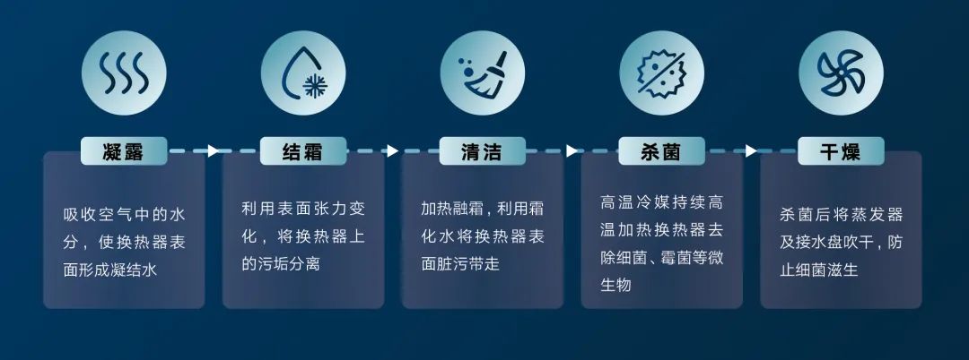 格力高温净菌自洁系统,五重步骤深层洁净,强力清洁蒸发器上的粉尘污垢后,自动进入高温灭菌阶段,高效净菌,让空调更洁净,出风更健康,大肠杆菌除菌效率达99.9%。