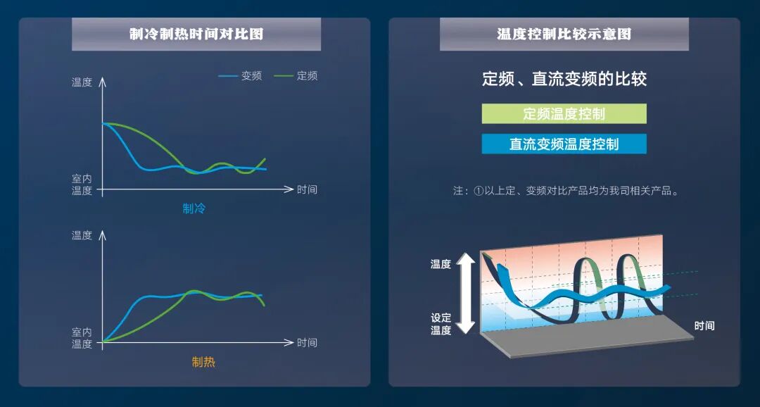 采用性能优越的直流变频电机,能够快速启动并平稳运行。同时全直流变频调节技术可根据室内外温度等参数自动调节温度,实现0.5℃精度控制。更细腻的温度控制,更贴心的舒适体验。