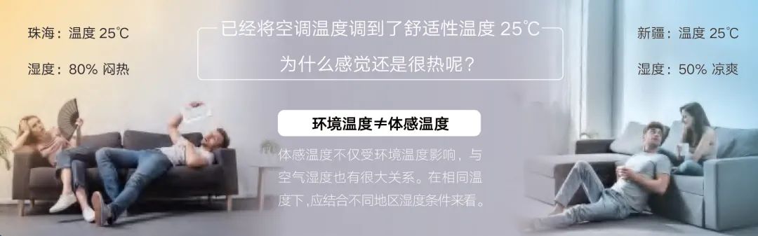 搭配高精度湿度传感器,充分考虑湿度对人体热舒适性的影响,对室内温湿度进行智能修正,大幅提升体感舒适度。同时辅以变蒸发温度控制,有效改善除湿量不足及过度除湿的现象。