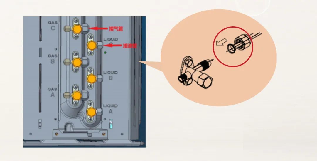 Free系列主机预留多套截止阀接口,内外机连接管采用喇叭口连接方式,无需焊接,避免了明火操作带来的不便及安全隐患,安全简单易操作。