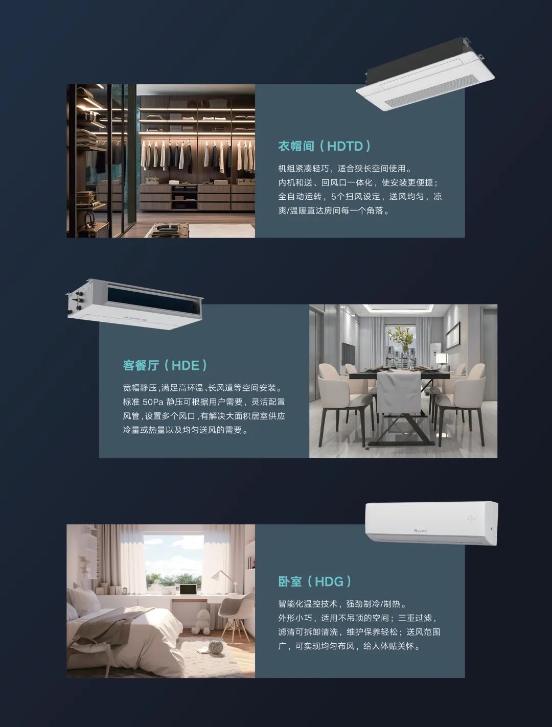 GMV StarⅢ可以搭配多样化的室内机,为不同空间、场景进行定制,满足用户的个性化需求。