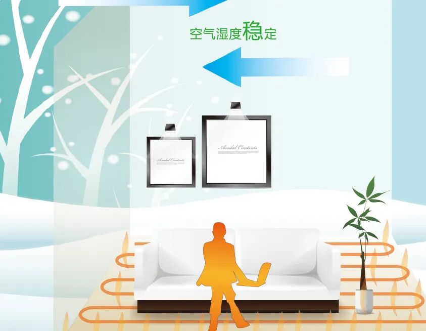 地板辐射表面温度低,能够维持房间良好的温度和湿度,避免皮肤因失水而过分干燥。