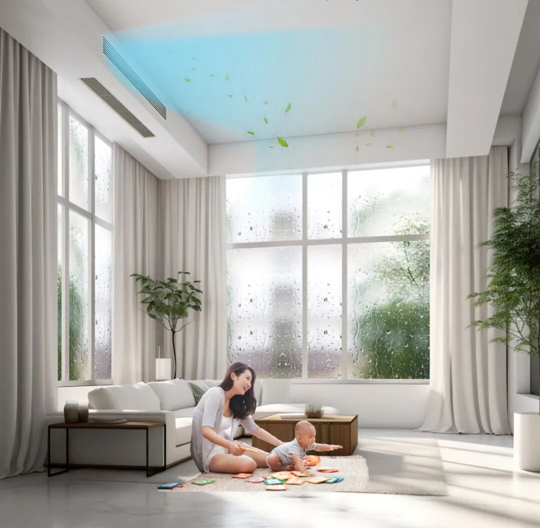 格力睿风集空调、除湿机和干衣机功能于一体,满足多种家居使用场景,同时机组暗藏嵌入吊顶之中,厚度仅198mm,极致节省空间。