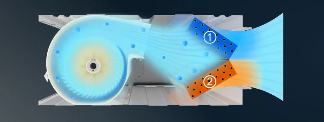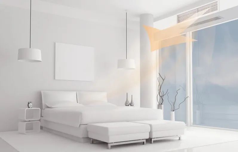 选配新型风口部件,扫风覆盖范围更广,扫风角度随心控制,实现全屋 3D 环绕送风效果。